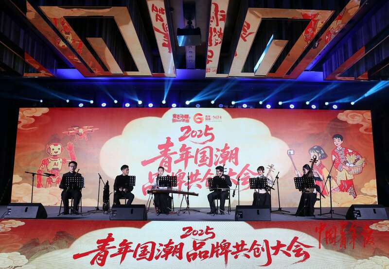11月26日,北京,2025青年国潮品牌共创大会会场,来自中国人民大学学生艺术团的同学演奏《兰亭序》和《我的祖国》。中青报·中青网记者 陈剑/摄