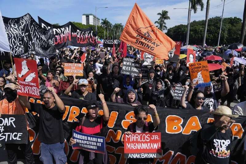 这一切的导火索,要从今年7月马科斯自己点燃的“反腐引线”说起。当时他在国情咨文里公开披露,全国近1万项防洪工程存在严重异常,涉案总金额高达5450亿比索(约合人民币680亿元)。随后几个月,越来越多“幽灵工程”(只拨款不见施工)和劣质防洪设施被曝光,民众的愤怒彻底被点燃——从9月底开始,马尼拉等多个城市几乎每周都有大规模反腐示威,数十万民众走上街头,要求彻查贪腐、追究责任人。