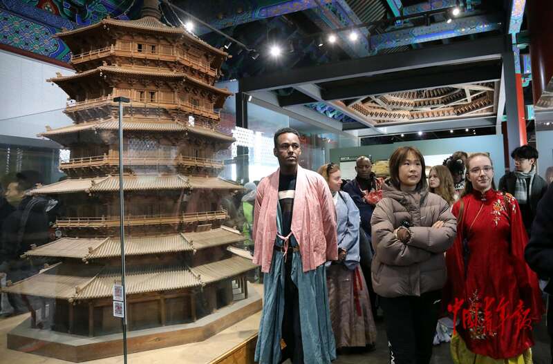 11月25日,在位于北京先农坛的北京古代建筑博物馆,中外学子在参观。中青报·中青网记者 陈剑/摄