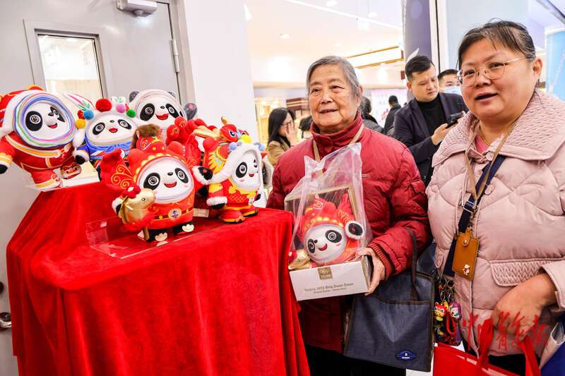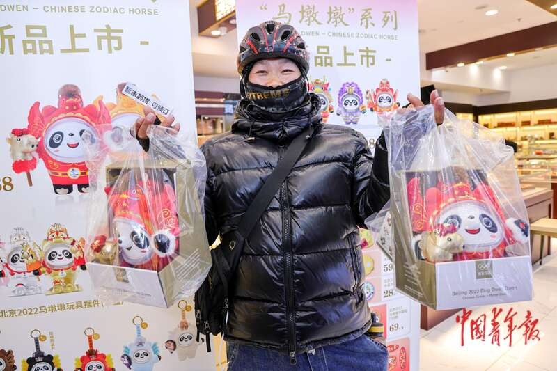 11月28日,北京王府井工美大厦,82岁的王奶奶告诉记者,从“虎墩墩”到“马墩墩”,每年她都会来买一个“冰墩墩”生肖系列产品带回家。中青报·中青网记者 陈思阳/摄