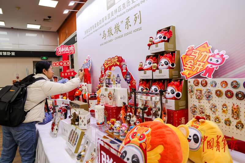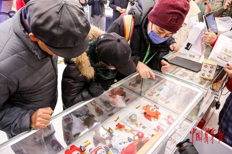 11月28日,北京王府井工美大厦,消费者在柜台前选购“马墩墩”系列产品。中青报·中青网记者 陈思阳/摄