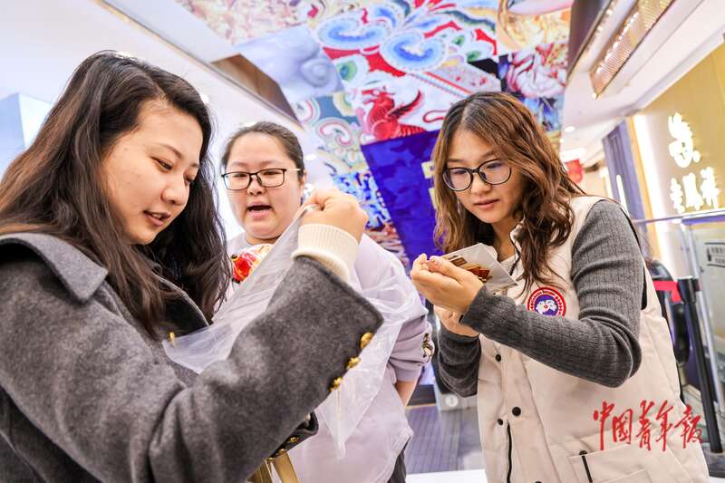 11月28日,北京王府井工美大厦,几名年轻人在选购“马墩墩”。中青报·中青网记者 陈思阳/摄