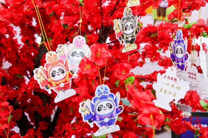 11月28日,北京,“马墩墩”首发当日,中国联通西单营业厅内设置了互动场景,不少人在心愿树上写下了美好愿望。中青报·中青网记者 陈思阳/摄