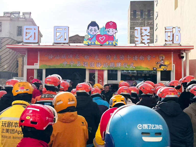 中国青年报客户端讯(李大军 中青报·中青网记者 焦敏龙)12月4日,共青团宁夏回族自治区中卫市中宁县委联合中宁县委社工部、县市场监督管理局、县交通运输局、县总工会,在金岸夜市青年友好街区为新兴领域户外青年工作者启用“团团驿站”。100余名新兴领域户外青年工作者参加“团团驿站”揭牌仪式。“杞小青”青年志愿服务队同期组建。