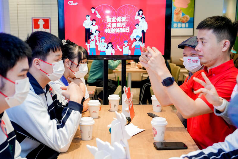 当天,深圳肯德基福民路天使餐厅获深圳市慈善事业联合会授牌,被认证为“鹏城慈善地标-慈善创益空间”。该餐厅力求让“天使员工”的工作更为顺畅便利,为他们创造自在交流、公平就业的职场氛围。这些“天使员工”经过培训,都能够熟练地操作设备、制作产品,残障并不妨碍他们为顾客提供标准、贴心、周到的服务。