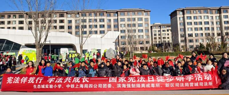 中国青年报客户端讯(胡育松 周颖 中青报·中青网记者 宋宝颖)12月4日,中铁上海局四公司团委、天津市滨海新区司法局营城司法所、滨海强制隔离戒毒所与生态城实验学校联合举办“宪法伴我行 学法共成长”国家宪法日徒步研学活动,300余名师生以“徒步+沉浸式体验”的创新形式,让法治教育走出课堂、贴近生活。