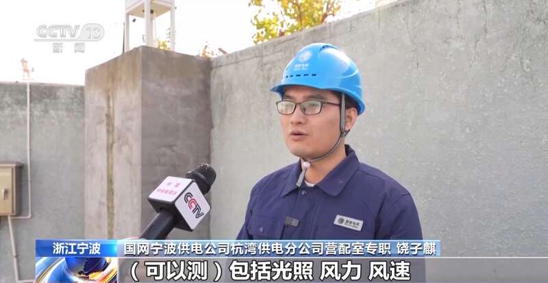 国网宁波供电公司杭湾供电分公司营配室专职 饶子麒:它上面装有很多传感器,可以测包括光照、风力、风速、雨量以及温度,帮助我们做到新能源发电功率出力预测。