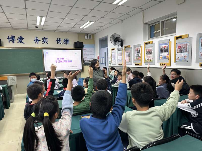 开课期间,来自北京化工大学、北京青年政治学院等院校的40余名大学生志愿者走进北京市朝阳区白家庄小学朝外校区、中国教育科学院朝阳附属实验学校等6所学校,分先导课和正式课程面向学生开讲。其中,先导课以钱学森、南仁东、袁隆平三位科学巨匠的科研经历为主线,以“视频+音频+互动问答”的多元形式调动学生的科研兴趣。