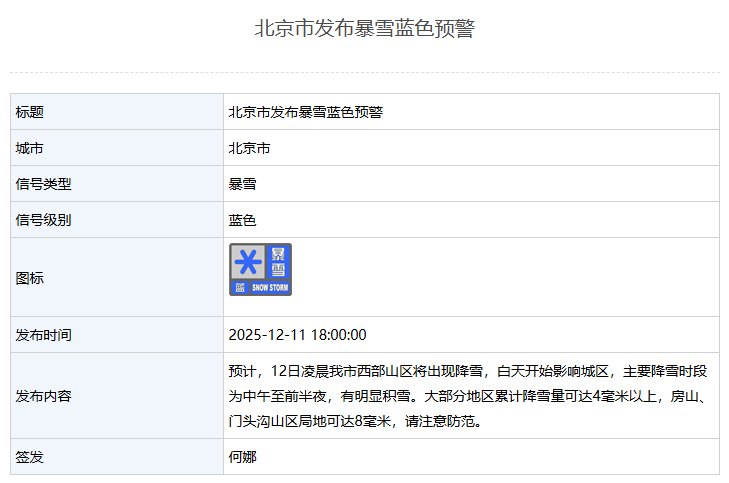 据北京市气象局消息,北京市发布暴雪蓝色预警。
