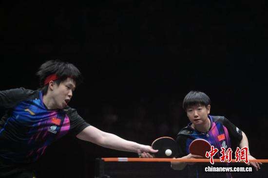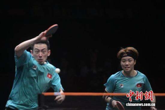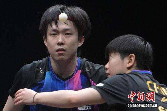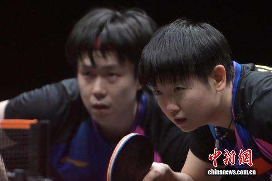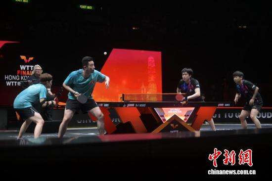12月12日,世界乒乓球职业大联盟(WTT)香港总决赛在香港体育馆继续进行。混双小组赛中,中国组合王楚钦/孙颖莎以3:2战胜中国香港组合黄镇廷/杜凯琹,取得三连胜。图为王楚钦(左)/孙颖莎在比赛中。