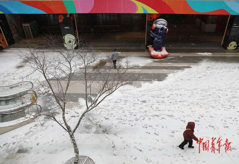 12月12日,北京市望京地区,行人从一处积雪处经过。当日,北京迎来今年冬天的首场降雪。据相关部门介绍,较1991年至2020年平均在12月3日的初雪日,今年北京冬天的初雪日迟到了9天。中青报·中青网记者 陈剑/摄