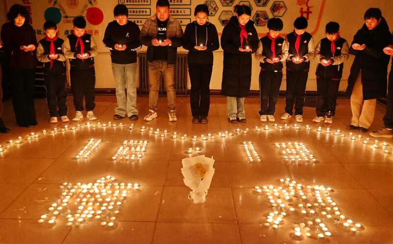 12月12日,河北省秦皇岛市海港区文化路街道团结里社区活动室内,人们为在南京大屠杀中牺牲的同胞默哀。2025年12月13日是第十二个南京大屠杀死难者国家公祭日。视觉中国供图
