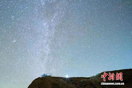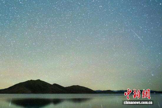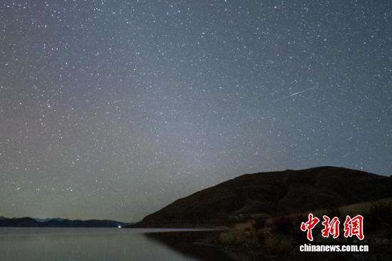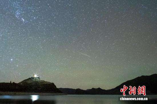 13日深夜,一颗流星划过西藏羊湖上空。