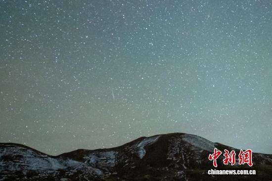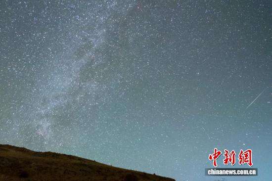 14日凌晨,一颗流星划过西藏羊湖附近的雪山上空。