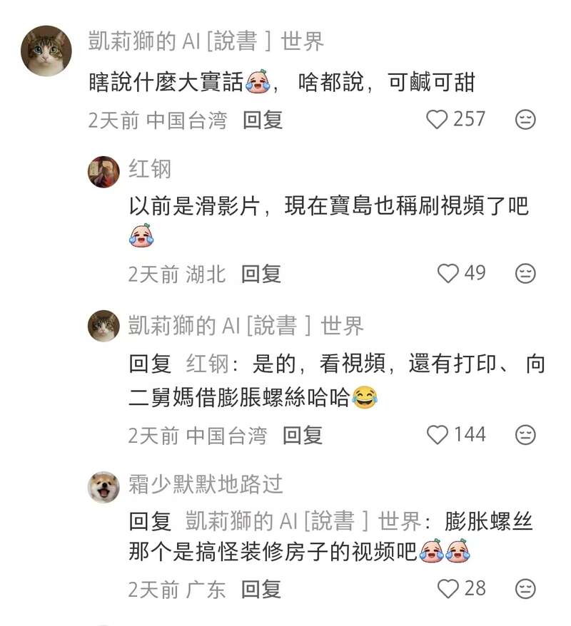 这名网友说,闺蜜在台湾原本的叫法是“姊妹淘”,颜值则是用“容貌”代替;台湾人现在常说的“在线等”,以及“走心、高清、吃货”等,最初也都来自大陆,令他感到“十分震撼”。不少跟帖的台湾网友觉得发文者“少见多怪”,他们纷纷指出,这种情况是互联网时代的常态。“‘姊妹淘’是45岁以上才用的。”“‘闺蜜’听十几年了,‘姊妹淘’现在反而没人用。”“‘颜值’这个词真的不错,直接把看脸打分数这个行为具象化了。”
