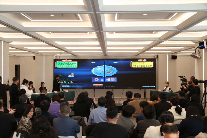 12月14日,北京市中小学生辩论演讲与数智交互创新展示活动,在北京经济技术开发区机器人大世界顺利落幕。图为北京高中生团队与机器人进行现场辩论的场景。(图片由北京教育融媒体中心提供)