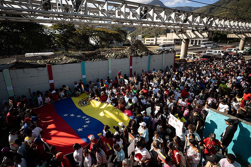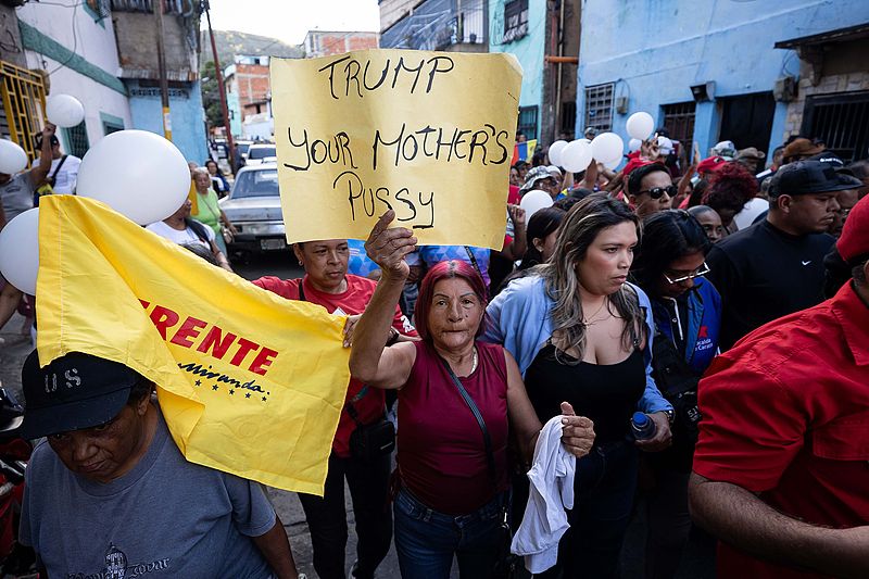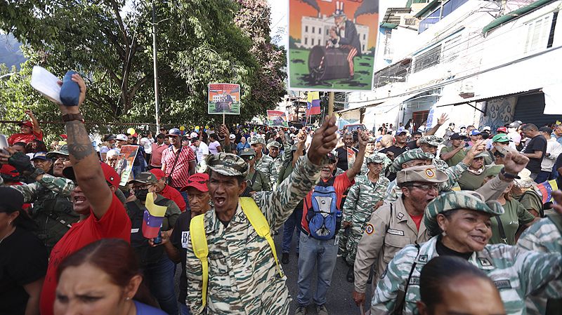 在首都加拉加斯,抗议者们谴责美国此举是对委内瑞拉国家财富的掠夺,并警告美国不要侵略委内瑞拉。