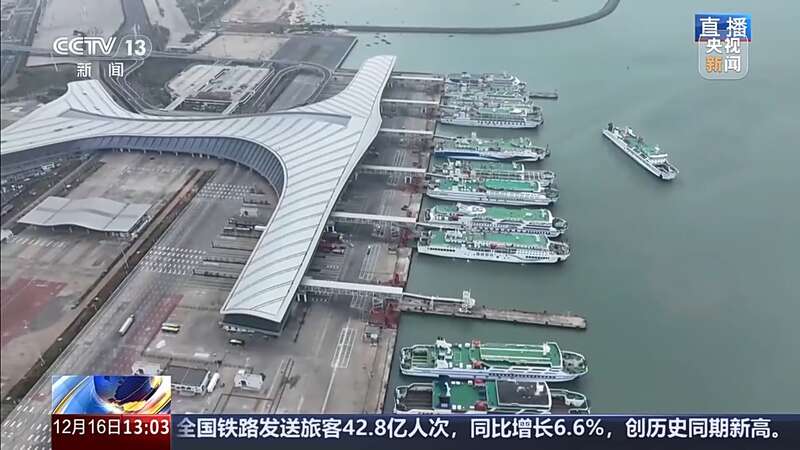 海南海口西海岸的新海港是琼州海峡最主要的客运轮渡码头,是海南自由贸易港的“二线口岸”,其建筑以“鲲鹏振翅”为造型,象征着联通与腾飞。