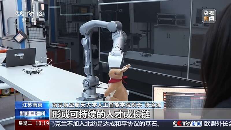 在北京航空航天大学具身智能机器人实验室,记者看到了行走的机器人、远程操控的机械臂、搬运重物的轮式双臂机器人,还有学生自主研发的机器狗——即使被踢倒,也能稳住身体重新站起。这些新技术与新场景,未来都将融入北航具身智能专业的课堂。
