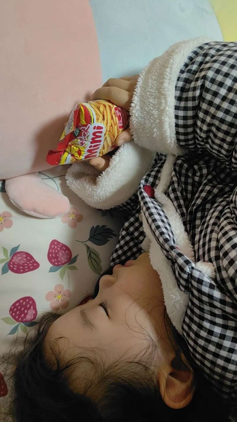 今晚,是千万个夜晚里一个普通的夜晚,我的宝贝两只小手捏着零食睡着啦!因为睡前我答应她起来就可以吃了,我想,她心里一定是揣着美好的期盼睡着的。看着可爱的她,觉得无比幸福美好,手机随手拍下。@金光闪闪亮