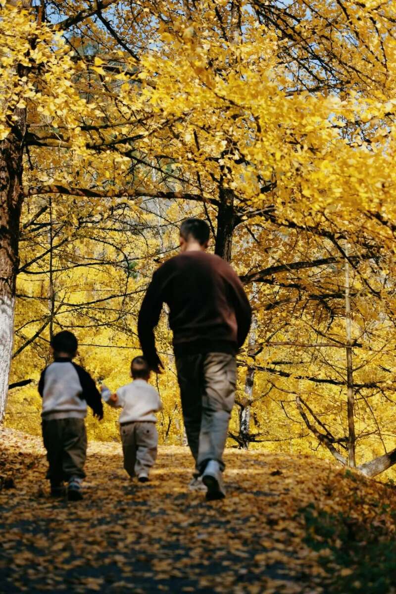 镜头外的我看着父子仨一起跑进金色的秋天。@巧克力江江包