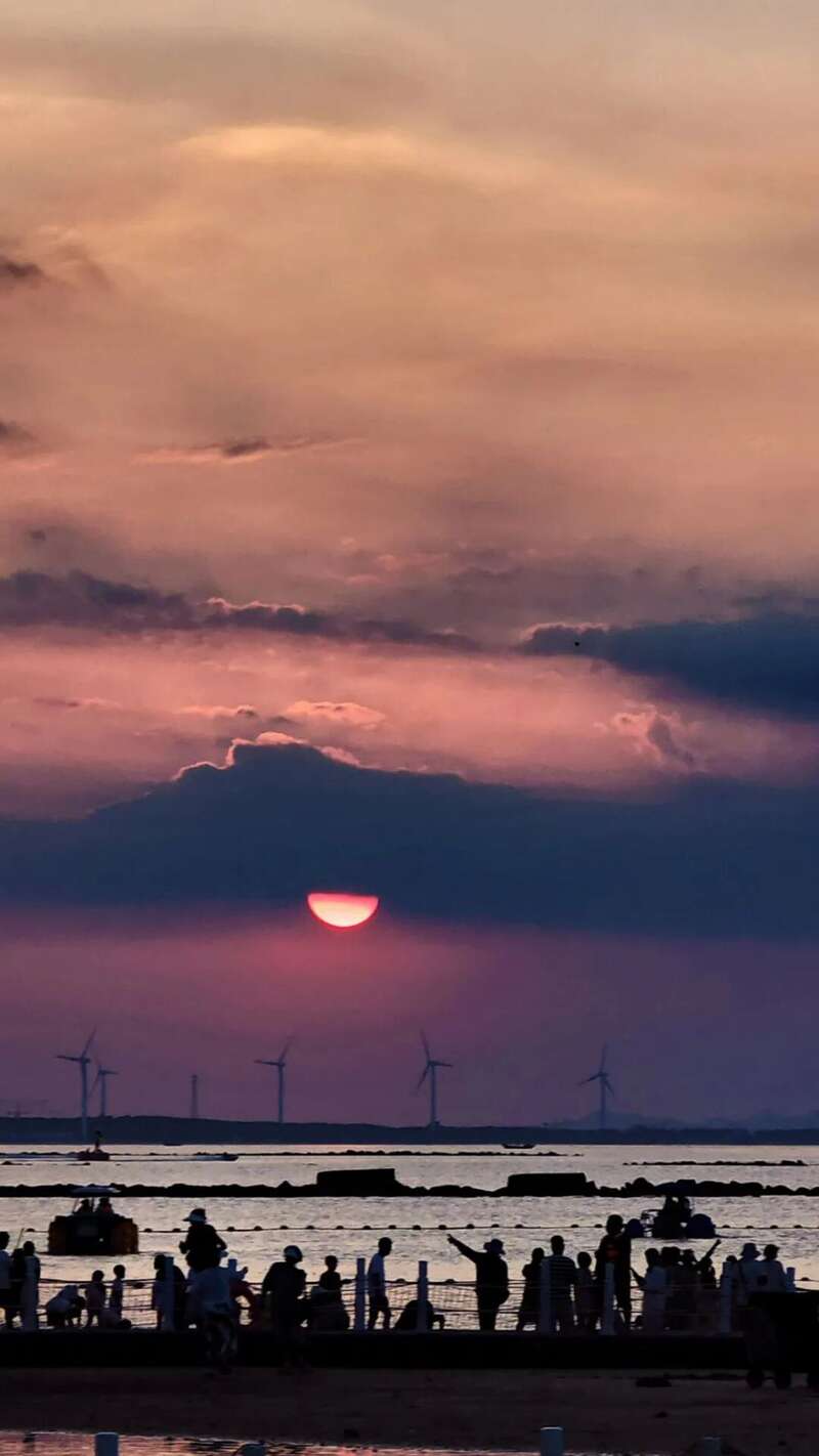 假期,人们在夕阳的海边。@大耀