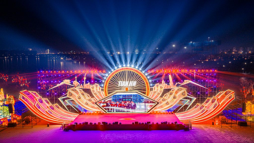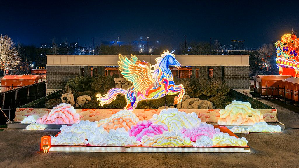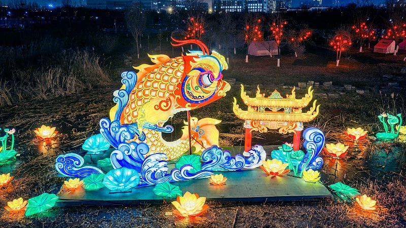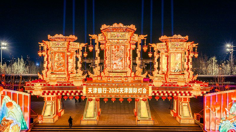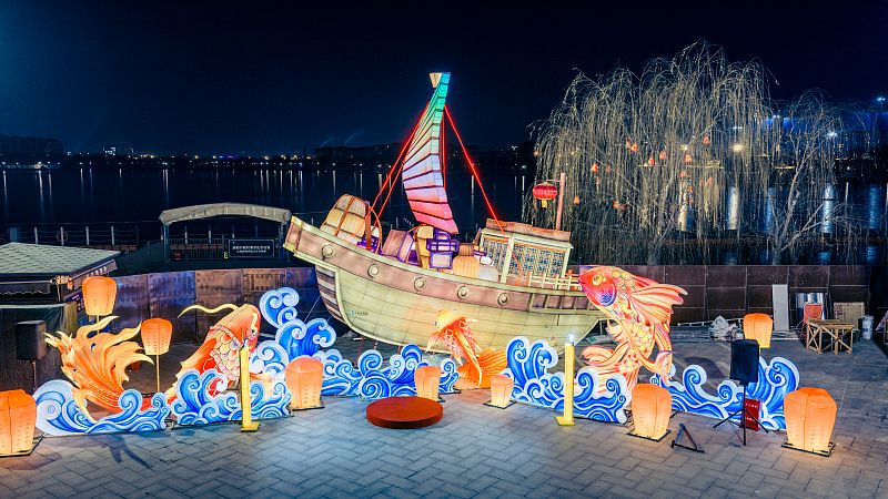2025年12月16日晚,天津水西公园,2026天津国际灯会布展完毕。灯会规划25万平米赏灯空间,展出近100组非遗艺术花灯,打造“非遗花灯+炫彩演艺+缤纷商业+尊享服务”一站式畅玩体验。
