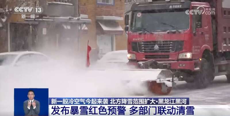 黑龙江黑河:发布暴雪红色预警 多部门联动清雪