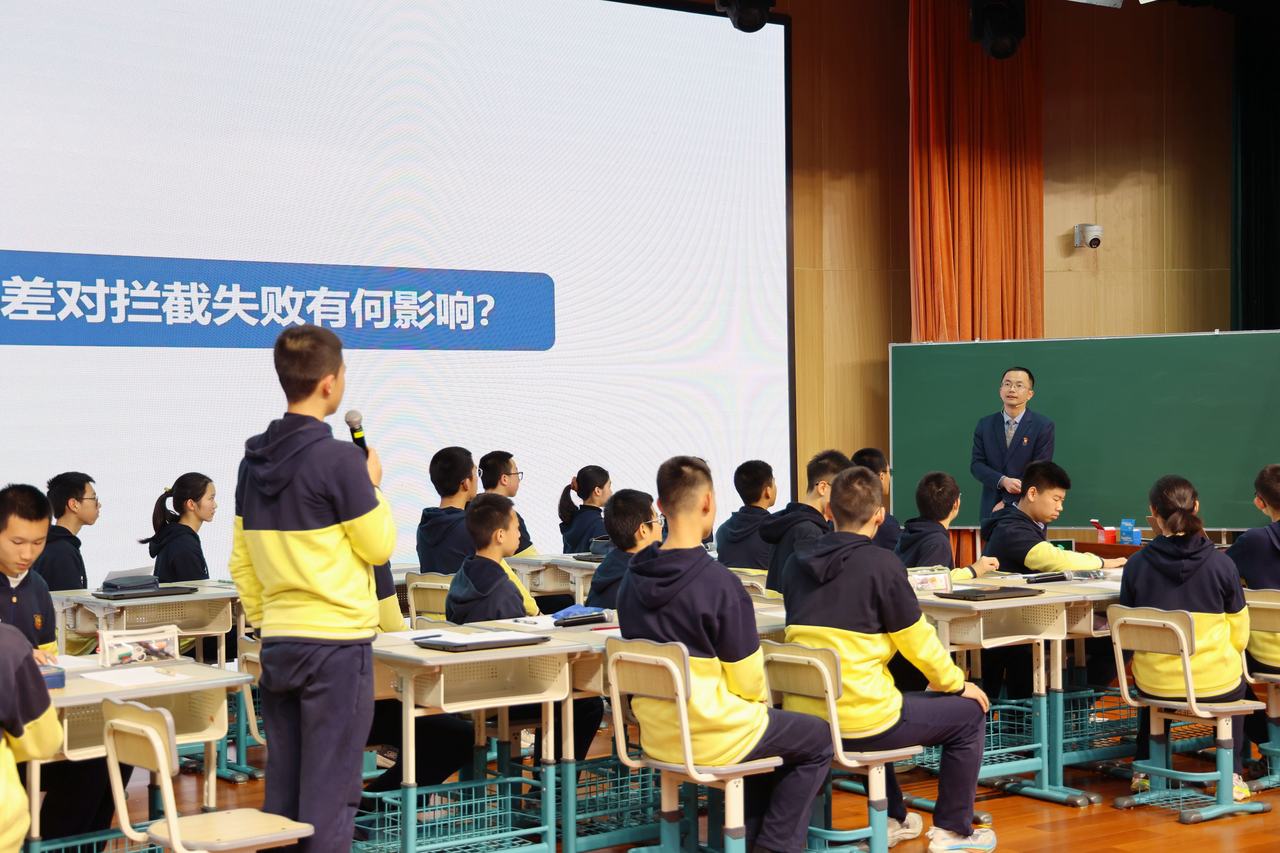 在这节课之前,来自集团不同初中、不同年级的同学们,已经进行了前期讨论,大家纷纷推测,导弹拦截失败可能是因为信号不好、没有预测到准确位置、没有识别到导弹、速度追不上或者计算错误、弹道预计错误等等。