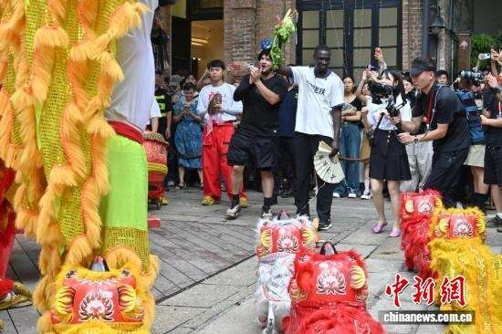 国际网红“无语哥”在广州永庆坊体验醒狮文化。中新社记者 陈楚红 摄