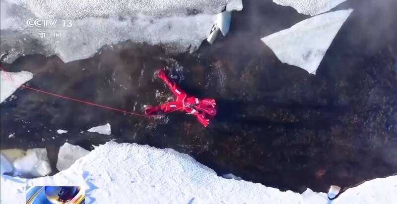 依托这一独特景观,当地推出了“躺冰”体验,在安全员与救生员的全程保障下,游客身着专业抗寒服漂浮于冰河之中,在雪山与雾凇环绕间感受极寒中的美景。