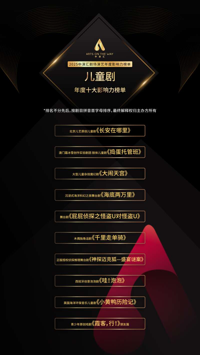 2025中演汇剧场演艺·儿童剧·年度十大影响榜单。主办方供图