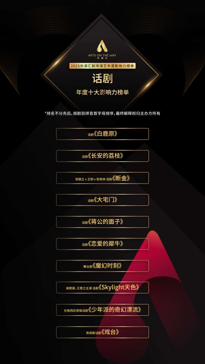2025中演汇剧场演艺·话剧·年度十大影响榜单。主办方供图