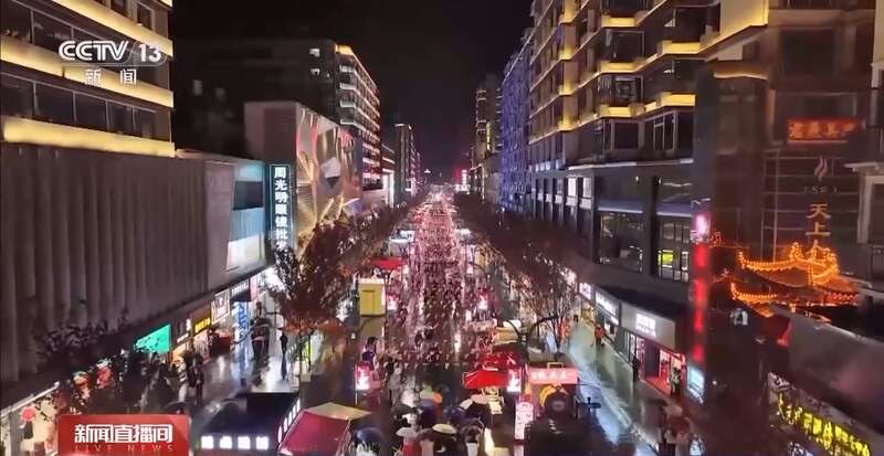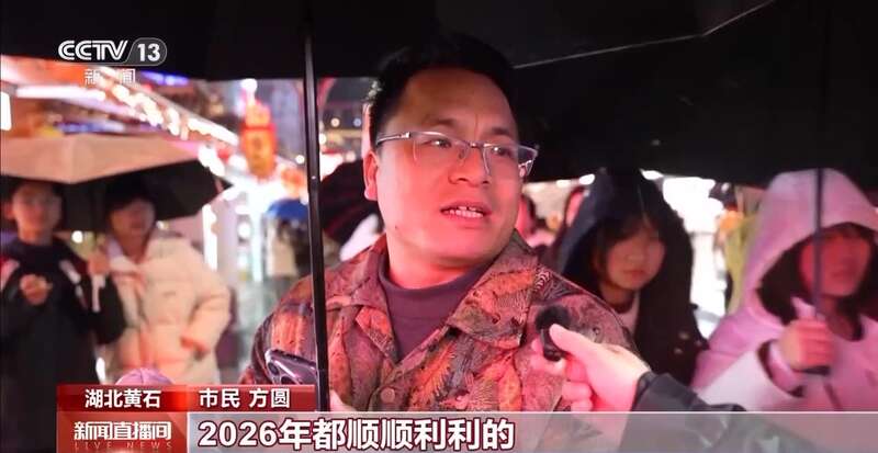 在湖北黄石,老商圈被柿灯、彩旗装扮得喜气洋洋。虽然下着雨,但大家参与跨年活动的热情丝毫不减,在这块户外3D裸眼巨幕下,人们拿出手机通过小程序,将祝福发送至后台,很快祝福就被分享到大屏上。