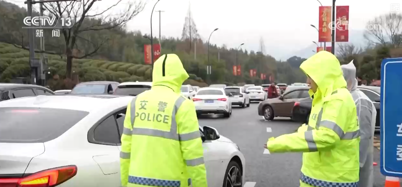 在杭州市余杭区,大径山部分高海拔地区也迎来了新年的首场降雪,不少游客特意赶来欣赏雪景。对此,交警部门积极上路,引导车辆快速停放。景区也加强了人员值守,组织游客有序排队,维护游玩秩序。