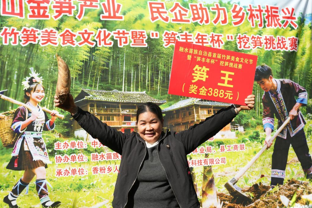 2026年1月7日,广西柳州,融水苗族自治县香粉乡九都村,一名参赛选手挖到的笋获得“笋王”称号。