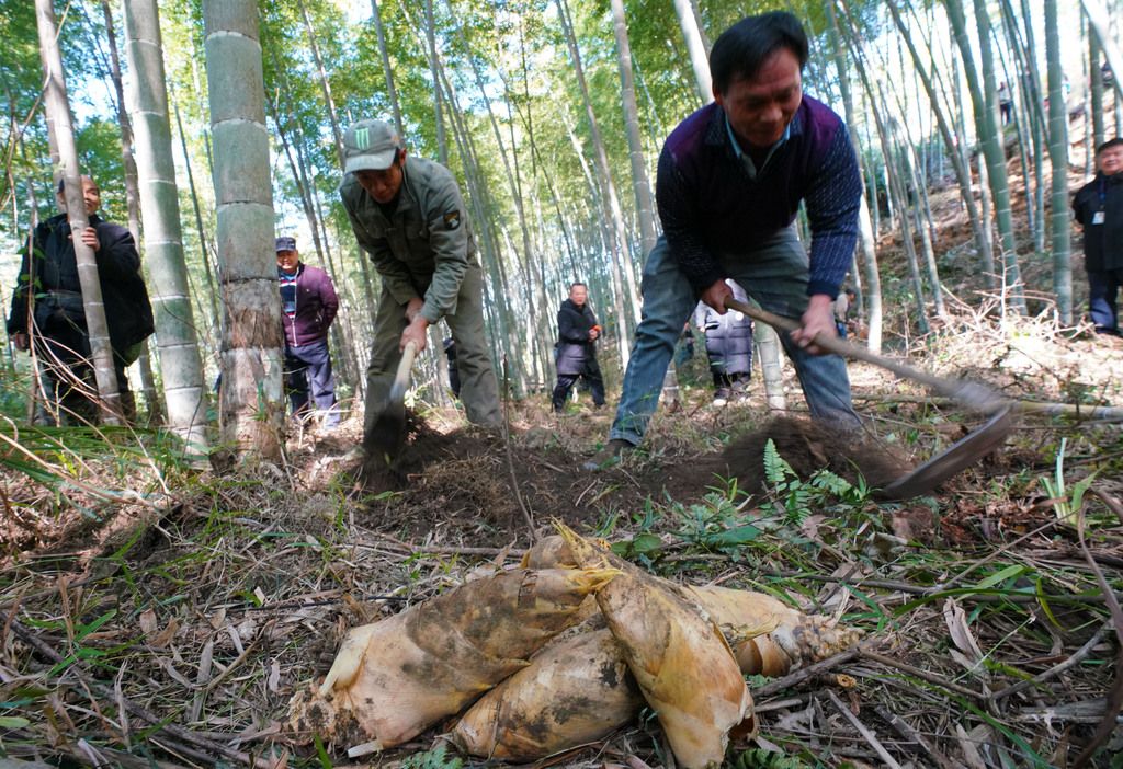 2026年1月7日,广西融水,香粉乡九都村楠竹种植基地,参赛村民进行挖冬笋比赛。
