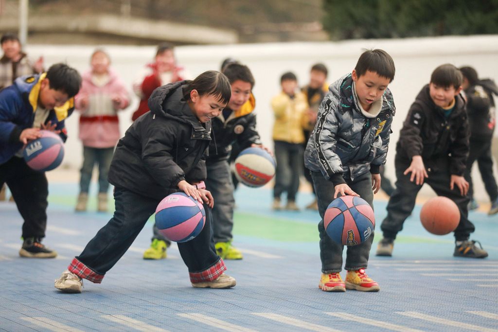 2026年1月8日,贵州黔西,五里布依族苗族乡茶林小学教学点,学生课间拍篮球。