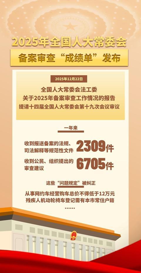 2025年12月22日,全国人大常委会法制工作委员会(以下简称“法工委”)关于2025年备案审查工作情况的报告(以下简称“报告”)提请十四届全国人大常委会第十九次会议审议。
