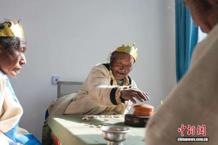 图为西藏定结县郭加乡切村,农村幸福院里,老人们在玩骰子。贡确 摄