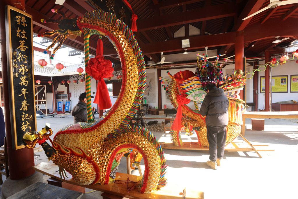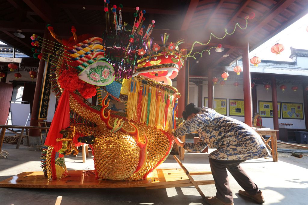 2026年1月9日,浙江省杭州市萧山区河上镇溪头村,国家级非遗——河上龙灯胜会的板龙已制作完成,1月10日发运,远赴北京,亮相中国非物质文化遗产博物馆。