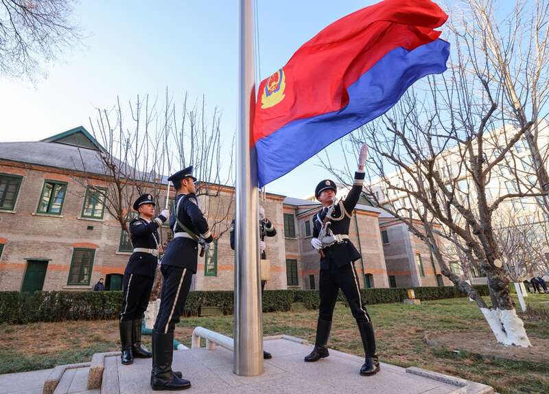 1月10日上午,公安部举行升警旗仪式,200余名干部代表整齐列队,向警旗敬礼,高唱《中国人民警察警歌》,并重温公安机关人民警察誓词。