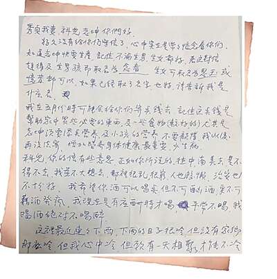 这里最近连连下雨,下雨的日子很冷,但没有家乡那么冷,但我心中冷,但愿有一天相聚才能不冷。秀贞,我欠你太多太多,愿天保佑你,科儿、志坤孝顺你……