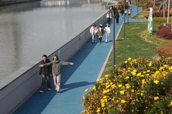 80后的董女士住在苏州河边已经快15年了,这两年她和先生都习惯在河畔散步、跑步,河滨贯通后,沿河跑步的区域也扩大了,往东往西都可以到很远,然后过桥再从对岸折返。她说:“我每天的心理垃圾都要倒到苏州河里去,它每天静静地流淌,不管怎么样,都是一副往前走的样子,你跟着它向前走,你的情绪就慢慢地留在了身后。特别是晚上,喧闹散去后,这里成为一个比较私密的空间,你能听到水流声,听到自己的呼吸,这种静谧能给我带来安全感,也提供了思考的空间。苏州河就像我家的后花园!”另一位住在河边的凌先生则提到了河两岸的阳光变化:“早上,南岸有太阳,中午后,河北岸的阳光好,掌握了这个规律后,住在河边的人就可以与河共生了。”