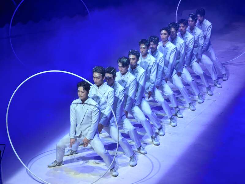 《时间-地圈》超越了传统“钻圈”的技艺框架,通过极简而富有张力的舞台设计、充满未来感的肢体语言,将循环往复的时间哲学,转化为一种跨文化的通用美学。