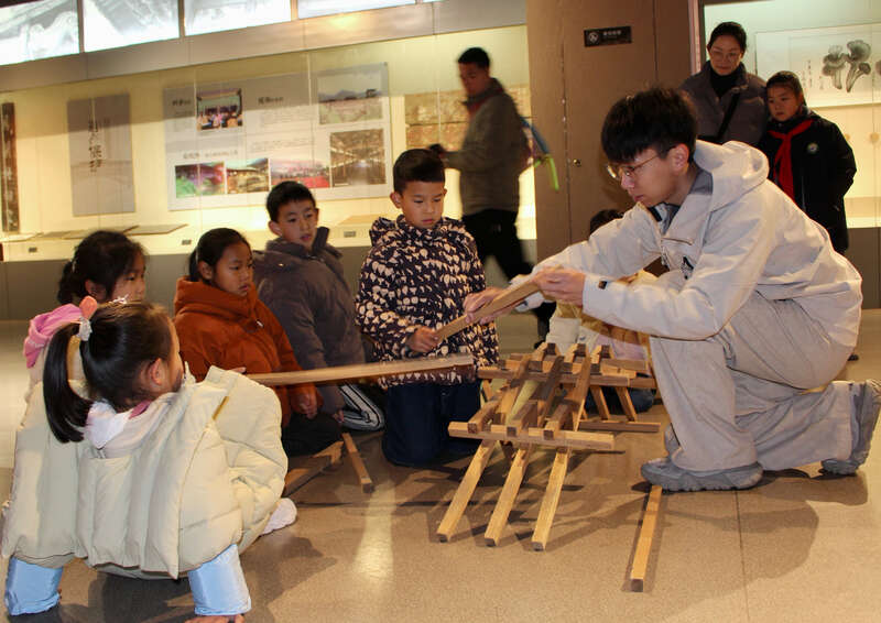 在庆元县廊桥博物馆3D演示厅,青少年学生通过红外感应技术“复原”古桥建造过程,直观感受从选址备料到雕梁画栋的完整工序;手工体验区,青少年学生手握微型木构件,模仿非遗技艺搭建廊桥模型,在比对、拼接中体会“八”字型榫卯结构的巧妙。庆元县青少年宫负责人说,让青少年学生成为廊桥文化的传承者和发展者。