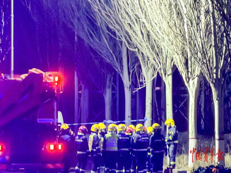 1月18日18时许,包头市消防救援支队工作人员正在紧急排险救援。中青报·中青网记者 石佳/摄