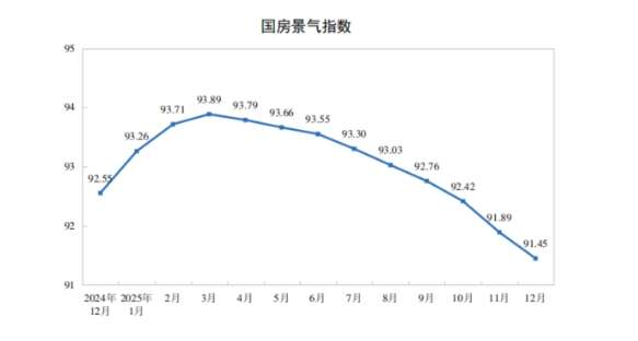 2025年12月份,房地产开发景气指数(简称“国房景气指数”)为91.45。