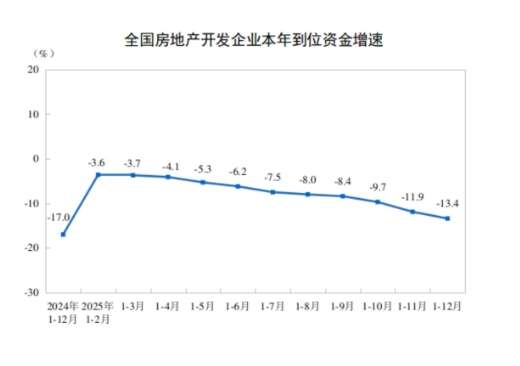 2025年,房地产开发企业到位资金93117亿元,比上年下降13.4%。其中,国内贷款14094亿元,下降7.3%;利用外资25亿元,下降20.8%;自筹资金33149亿元,下降12.2%;定金及预收款28089亿元,下降16.2%;个人按揭贷款12852亿元,下降17.8%。