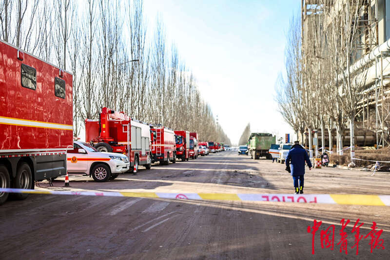 1月19日,消防救援人员在包钢股份板材厂事故现场进行救援。中青报·中青网记者 石佳/摄